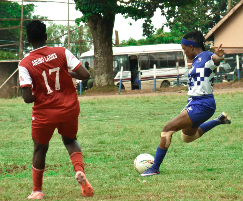 The game paused for a few minutes as Asubo Ladies’ goalkeeper was injured in trying to deny Kanyiginya’s freekick.