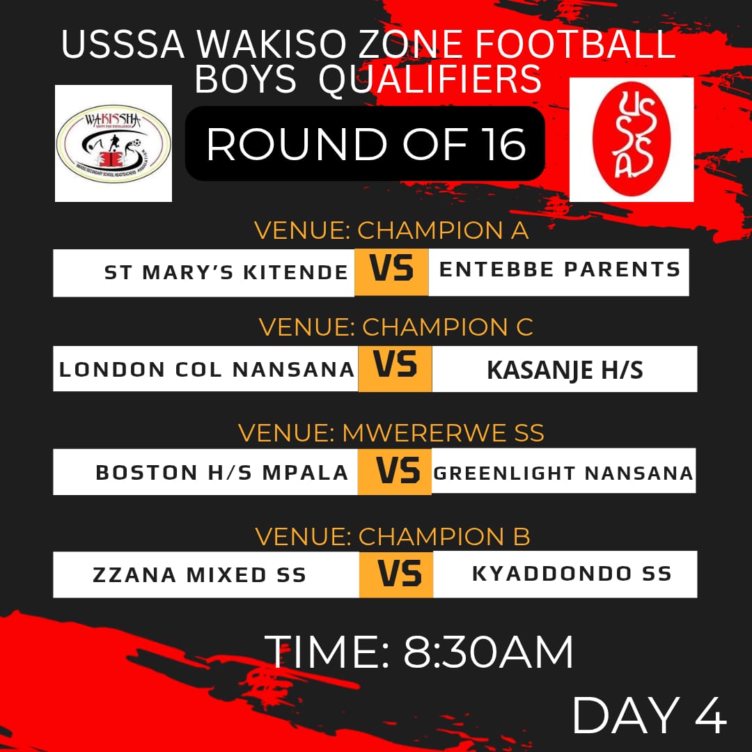 Another Entebbe Zone team Boston High School, face Greenlight at Mwerere SS playground, Zana Mixed take on Kyaddondo SS at Champions playground B and London College take on Kasanje H/S at Champions playground C in other 8:30 Fixtures.